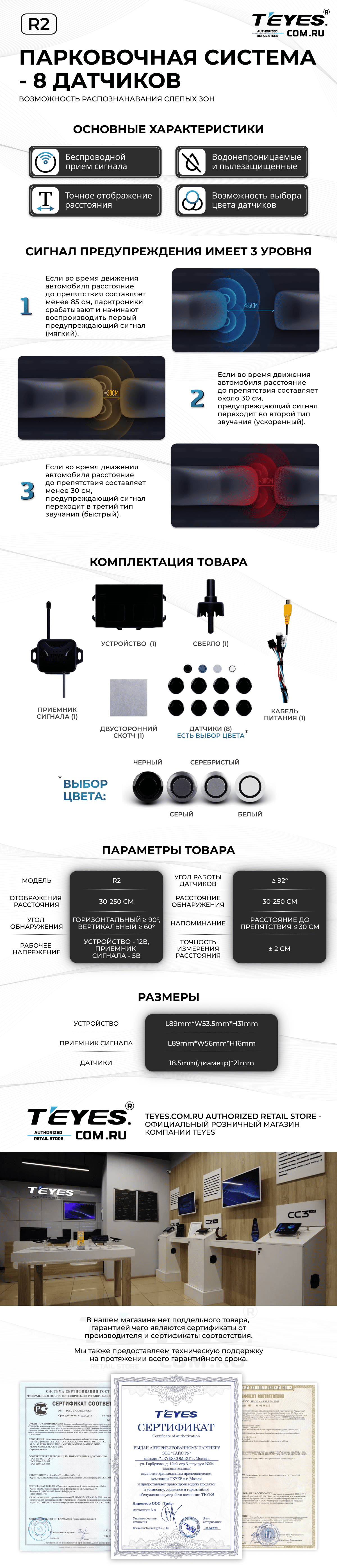 Передние и задние парктроники Teyes R2 для CC4 Pro / CC4 / CC4L / CC3 2K / CC3 / CC3L / CC2 Plus / SPRO Plus / TPRO2 / LUX ONE (Серебристые) 8-датчиков - купить всего за 19 900 руб. в интернет-магазине в Твери Teyes.com.ru. ✓ Самый лучший выбор мультимедиа ✓ Лучшая замена штатному ГУ ✓ Тел. +7 (800) 775-31-74