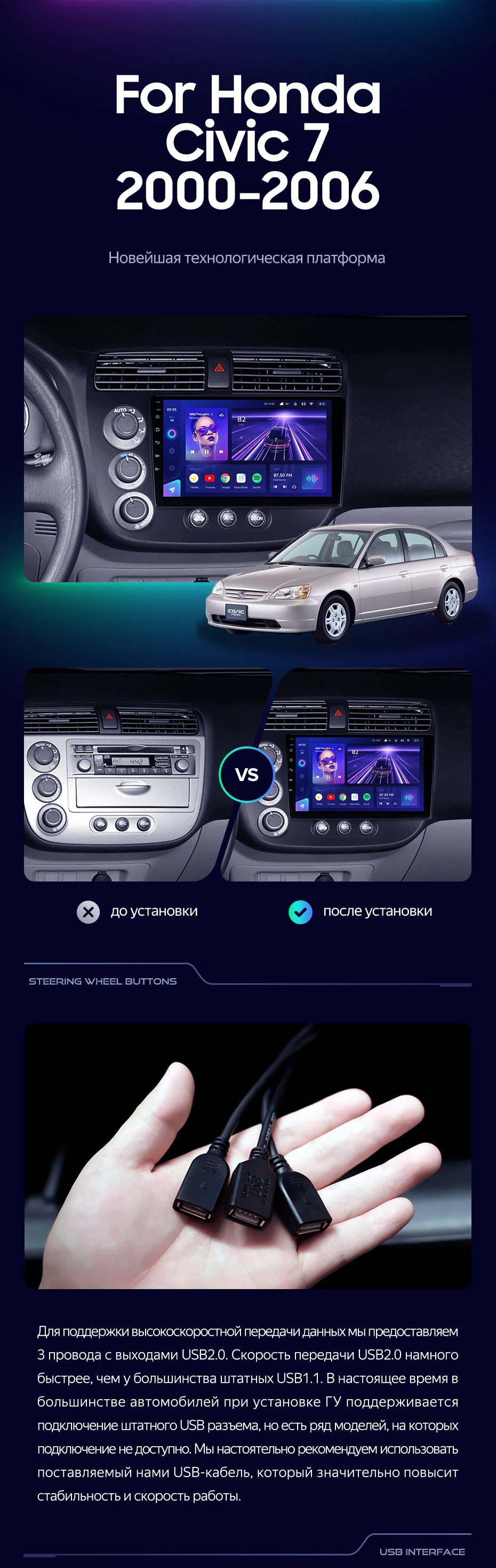 Штатная магнитола Teyes CC3 4/32 Honda Civic 7 (2000-2006) F1 - купить всего за 32 530 руб. в интернет-магазине в Твери Teyes.com.ru. ✓ Самый лучший выбор мультимедиа ✓ Лучшая замена штатному ГУ ✓ Тел. +7 (800) 775-31-74