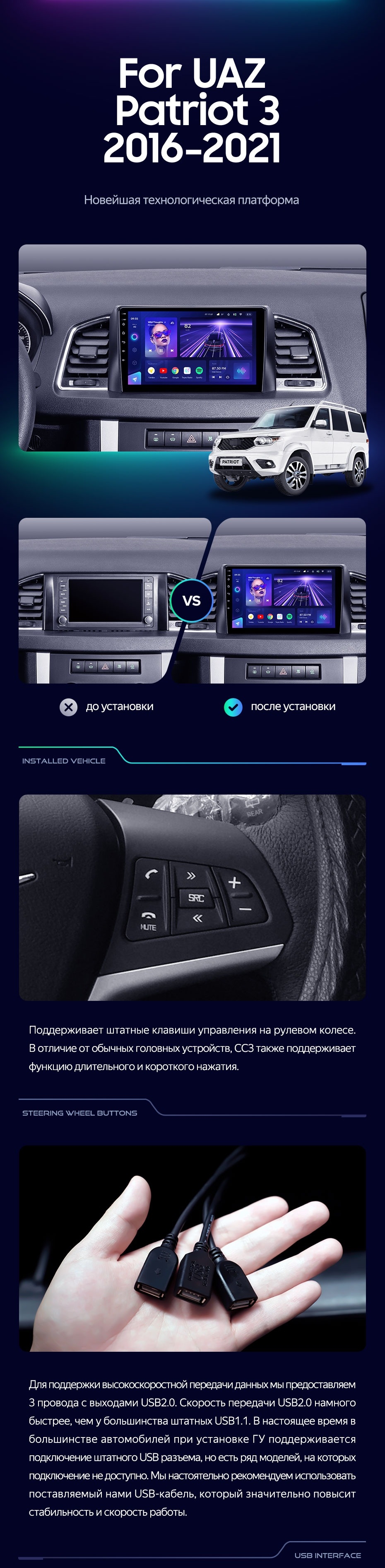 Штатная магнитола Teyes CC3 6/128 UAZ Patriot 3 (2016-2021) F1 - купить всего за 45 400 руб. в интернет-магазине в Твери Teyes.com.ru. ✓ Самый лучший выбор мультимедиа ✓ Лучшая замена штатному ГУ ✓ Тел. +7 (800) 775-31-74