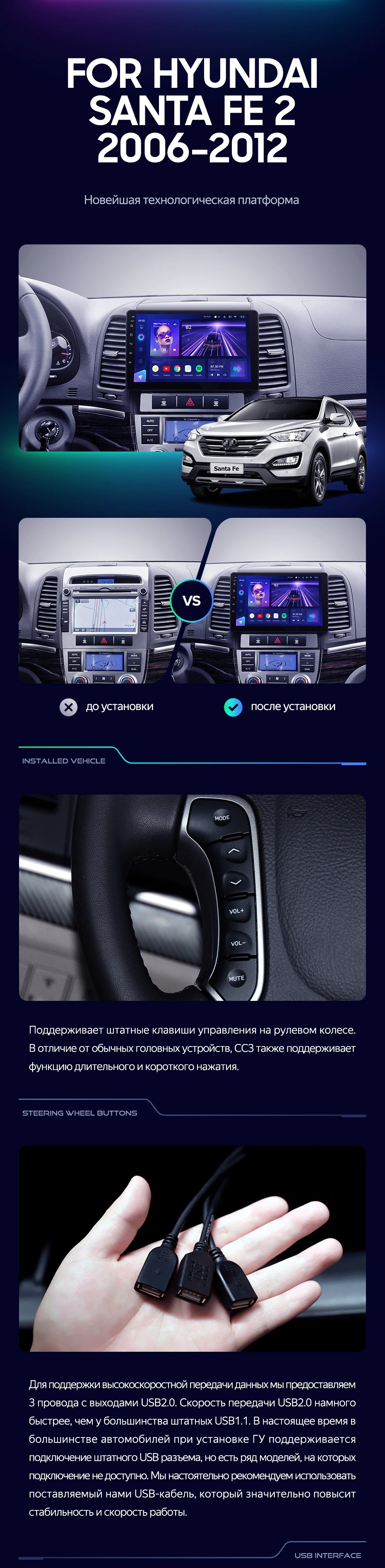 Штатная магнитола Teyes CC3L 4/32 Hyundai Santa Fe 2 (2006-2012) - купить всего за 28 440 руб. в интернет-магазине в Твери Teyes.com.ru. ✓ Самый лучший выбор мультимедиа ✓ Лучшая замена штатному ГУ ✓ Тел. +7 (800) 775-31-74