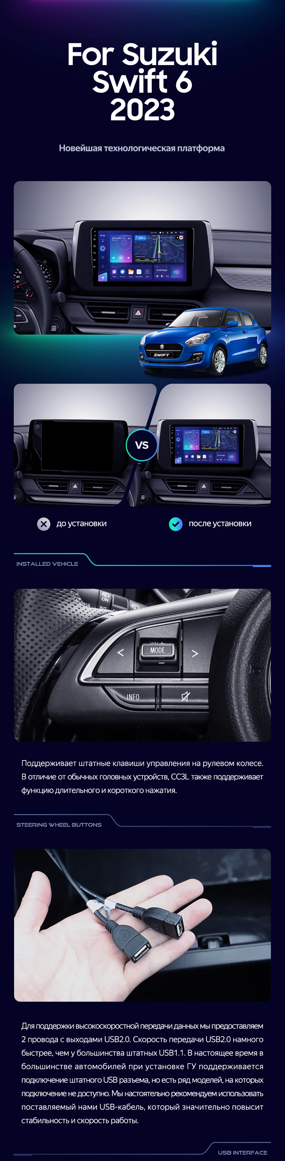Штатная магнитола Teyes CC3L 4/32 Suzuki Swift 6 (2023-2026) - купить всего за 28 100 руб. в интернет-магазине в Твери Teyes.com.ru. ✓ Самый лучший выбор мультимедиа ✓ Лучшая замена штатному ГУ ✓ Тел. +7 (800) 775-31-74