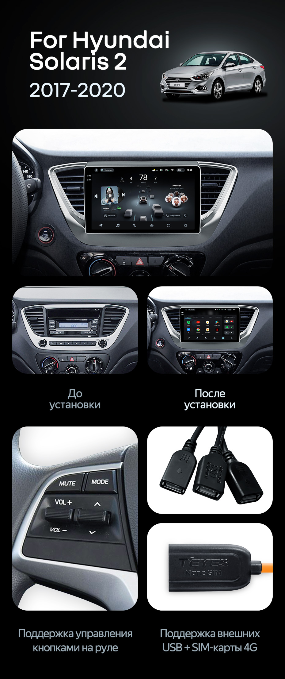 Штатная магнитола Teyes CC4 Pro 12/256 Hyundai Solaris 2 (2017-2020) F1 Тип-B - купить всего за 69 400 руб. в интернет-магазине в Твери Teyes.com.ru. ✓ Самый лучший выбор мультимедиа ✓ Лучшая замена штатному ГУ ✓ Тел. +7 (800) 775-31-74