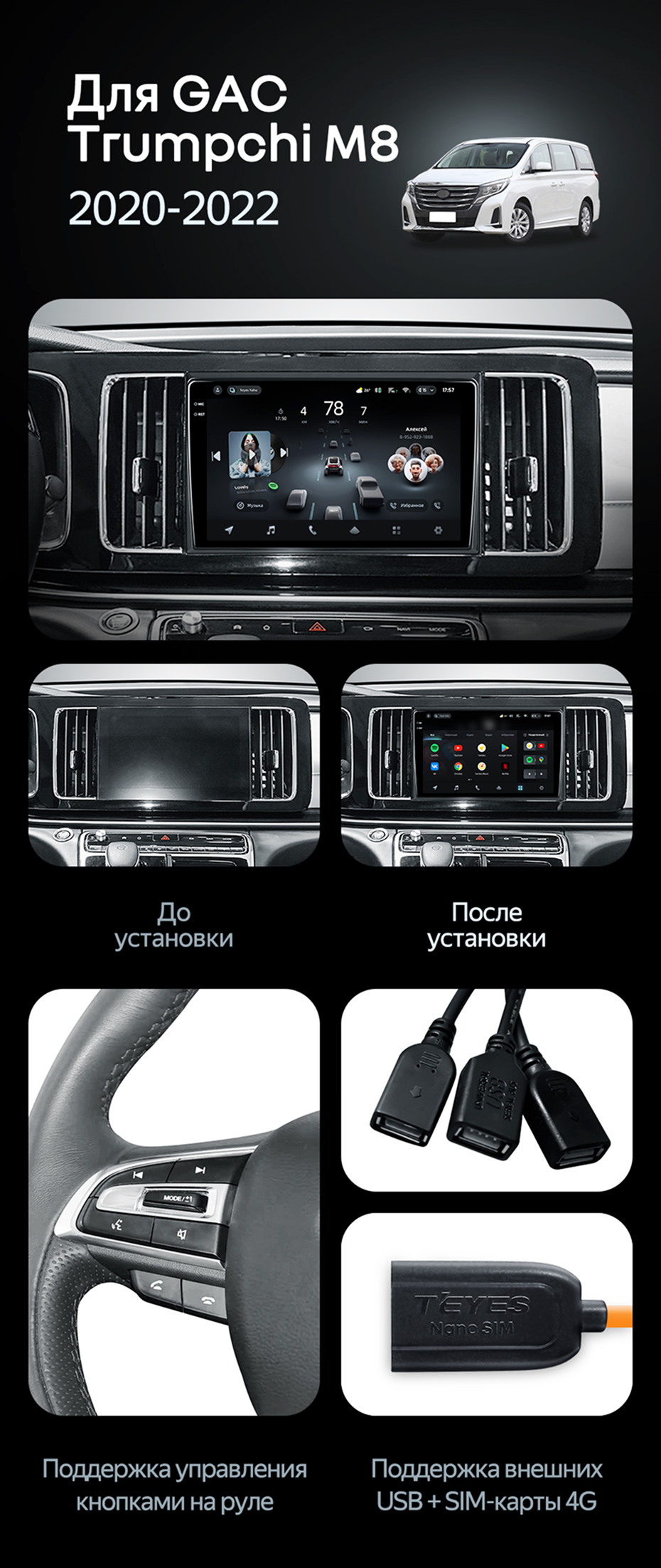 Переходная рамка GAC Trumpchi M8 (2020-2022) (10") - купить всего за 5 400 руб. в интернет-магазине в Твери Teyes.com.ru. ✓ Самый лучший выбор мультимедиа ✓ Лучшая замена штатному ГУ ✓ Тел. +7 (800) 775-31-74