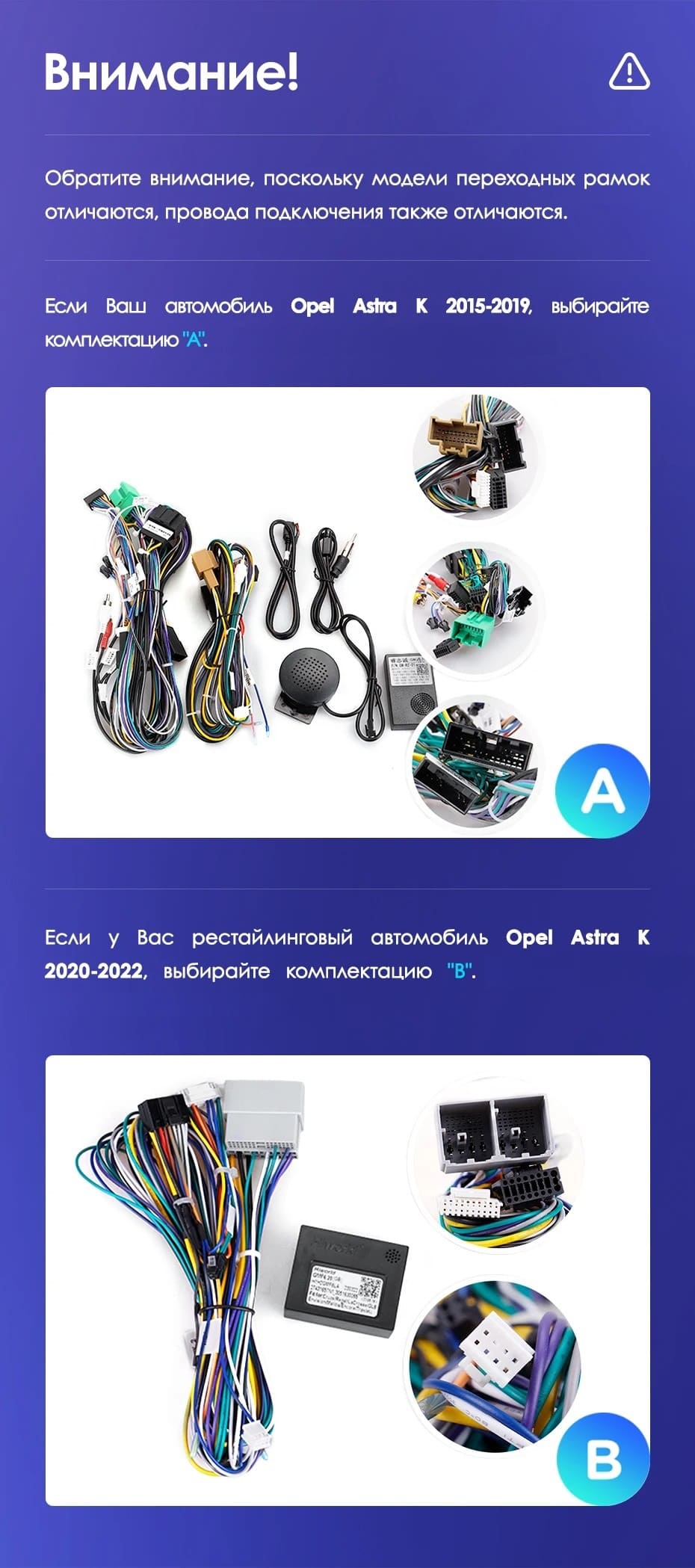 Готовый установочный комплект для магнитолы Opel Astra K (2020-2022) Тип-B 9 дюймов в штатное место, включает переходную рамку и проводку.