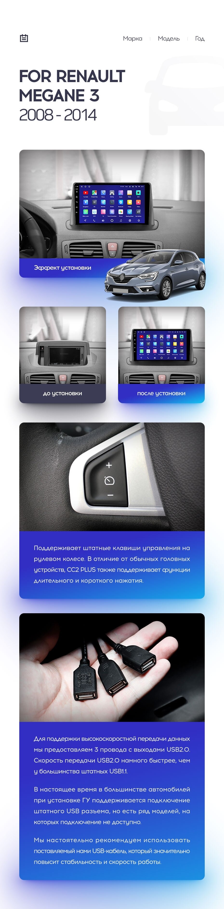 Полный комплект установки магнитолы Teyes с рамкой и проводкой можно выбрать в каталоге штатных магнитол Renault Megane 3 (2008-2014).