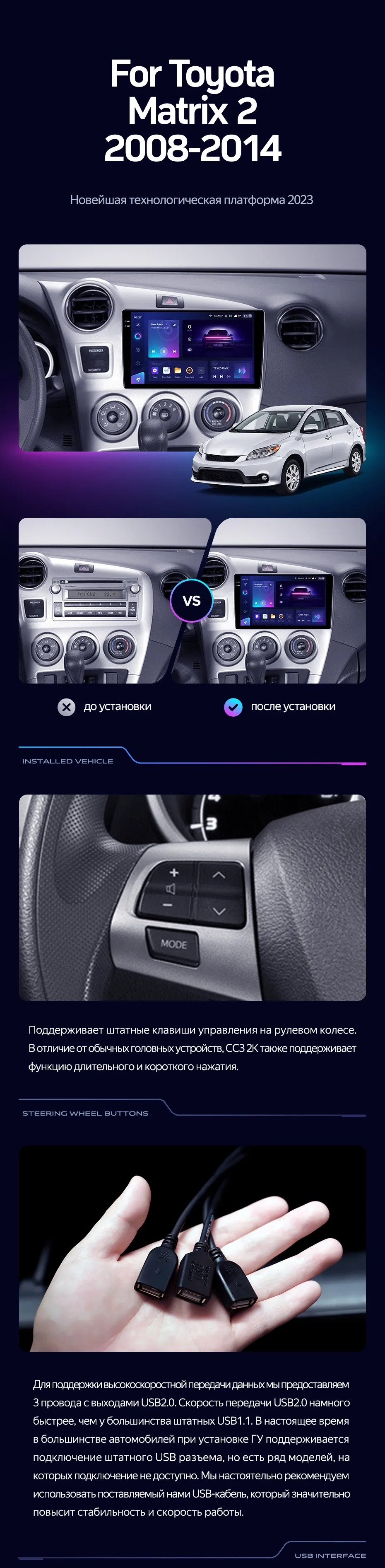 Переходная рамка Toyota Matrix 2 E140 (2008-2014) (9") - купить всего за 5 300 руб. в интернет-магазине в Твери Teyes.com.ru. ✓ Самый лучший выбор мультимедиа ✓ Лучшая замена штатному ГУ ✓ Тел. +7 (800) 775-31-74